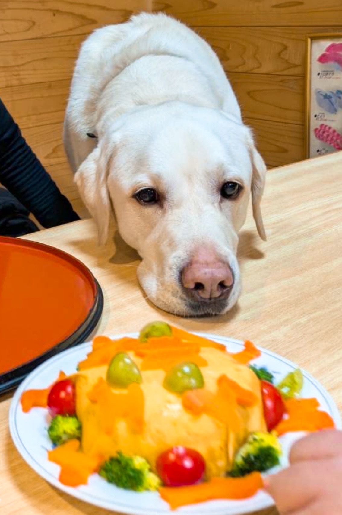 お誕生月のわんちゃんに血合い入り卵ケーキをプレゼントします。写真は大型犬用です。要前日まで予約。